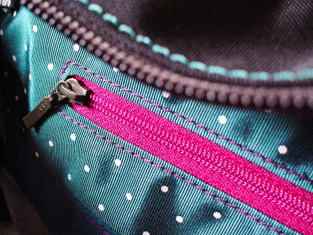 内装のファスナー と 内装の糸色 だけ、遊び心で