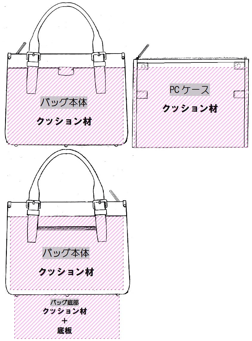 パソコンバッグ3WAY には、「緩衝材」が配置されています。