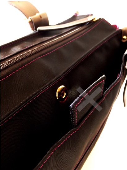 (※ 代替案として、バッグ下部に取っ手挿入口を設けるのではなく、上図ピンク部分のような「取っ手挿入ベルト」なども考えられます。)