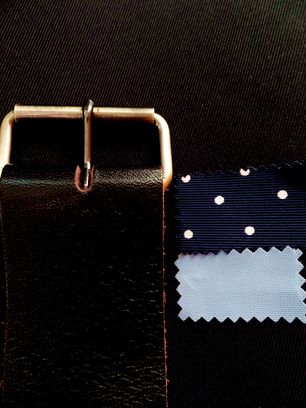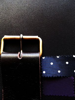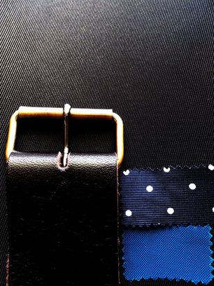 C:[ 生地:黒 ]+ [ 革:濃チョコ ] + [ 水玉裏地:ネイビー ]