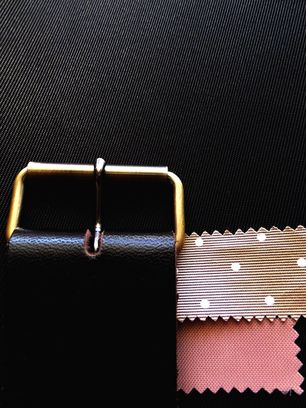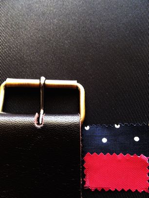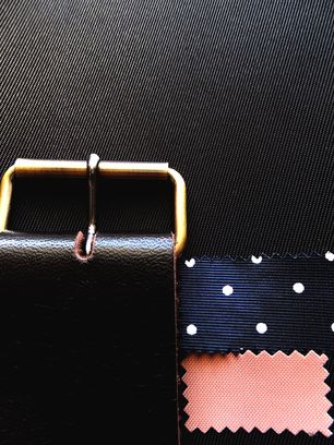 A:[ 生地:黒 ] + [ 革:濃チョコ ] + [ 水玉裏地:ベージュ]