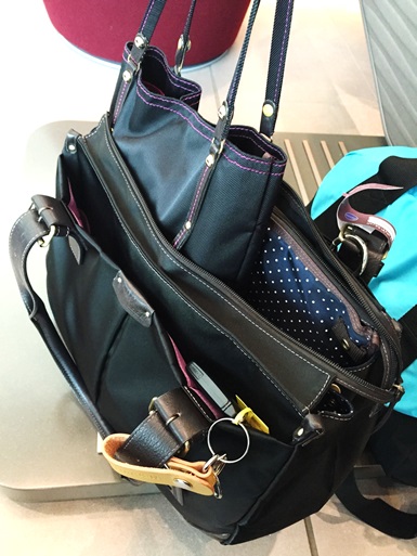 貴重品や機内で使いたい小物をサブバックに入れておき、