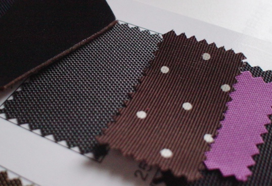 ■チョコ(ナイロン)xダークチョコ革x裏地【チョコ ドット柄+プラム】