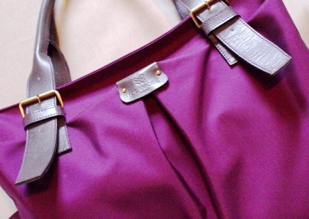 ■ダークグレー(ナイロン)xダークチョコ革x裏地【プラム ドット柄+プラム】